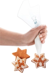 Κάντε πιο εύκολη τη διακόσμηση των επιδορπίων με το σετ ζαχαροπλαστικών σακουλών, που εξασφαλίζει άνετη, καθαρή και ακριβή εφαρμογή κρεμών, γλασαρίσματος ή γεμίσεων. Χάρη στο ελαστικό υλικό, ρυθμίζετε εύκολα την πίεση και, κόβοντας την άκρη, ορίζετε το μέγεθος του ανοίγματος ανάλογα με την ανάγκη.