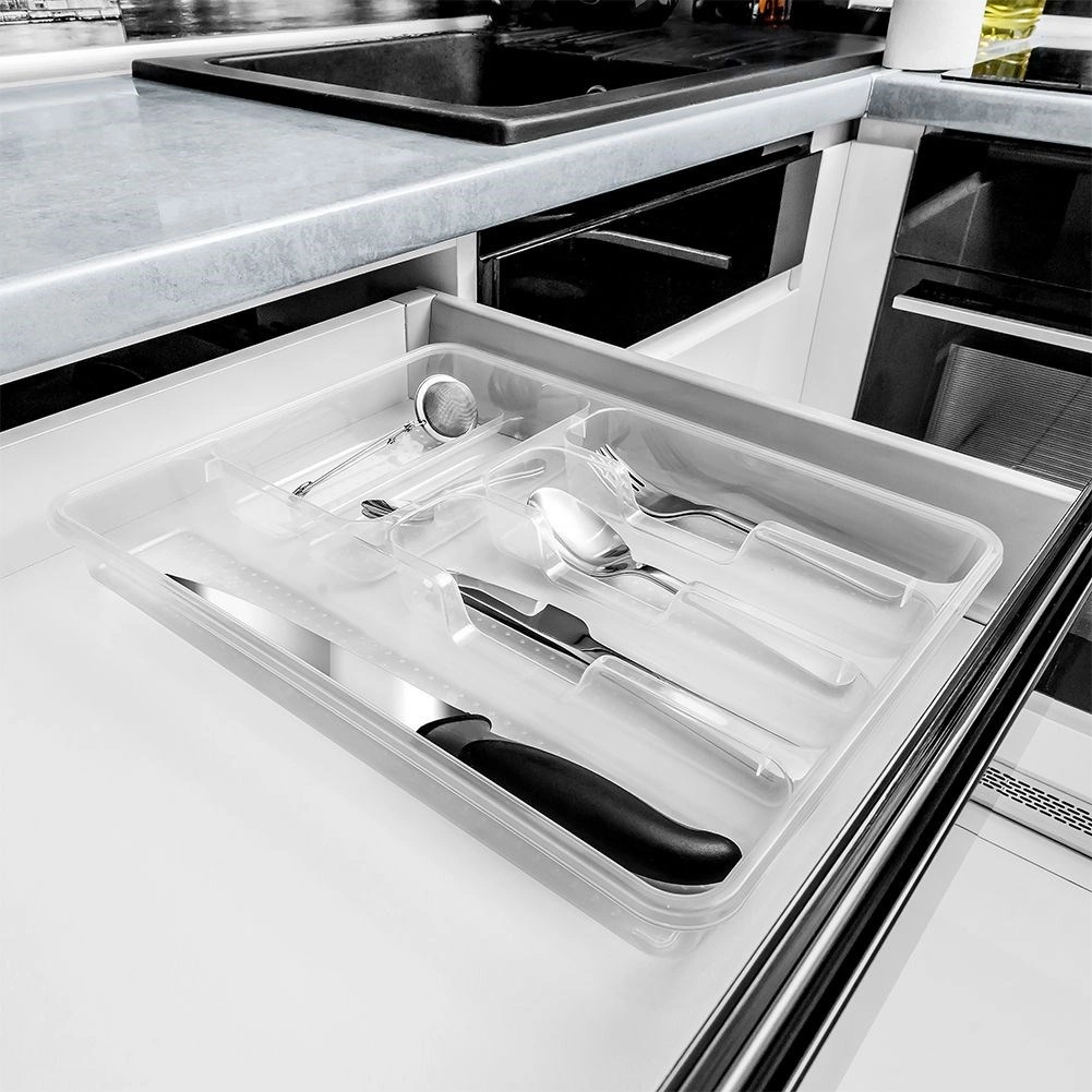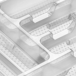 Οργανώστε το συρτάρι σας καθαρά και χωρίς κόπο. Η διαφανής εισαγωγή συρταριού για μαχαιροπίρουνα βοηθά στη αποτελεσματική διαίρεση του χώρου και στο να έχετε τα πάντα πρόχειρα. Το ποιοτικό υλικό εξασφαλίζει μεγάλη διάρκεια ζωής και καθαρή εμφάνιση στην καθημερινή χρήση.