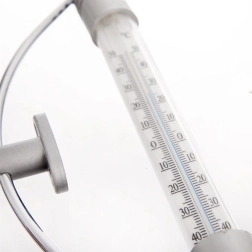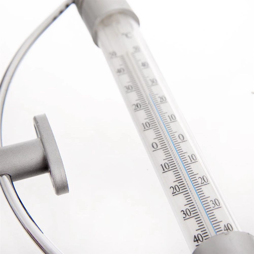 Πρακτικό εξωτερικό θερμόμετρο για ακριβή παρακολούθηση της θερμοκρασίας σε μπαλκόνι, βεράντα ή κήπο. Προσφέρει ευανάγνωστη κλίμακα από -40 °C έως +50 °C, είναι ανθεκτικό στις καιρικές συνθήκες και τοποθετείται εύκολα. Ο μοντέρνος σχεδιασμός από ανοξείδωτο ατσάλι με ασημί φινίρισμα ταιριάζει ιδανικά σε κάθε εξωτερικό χώρο.