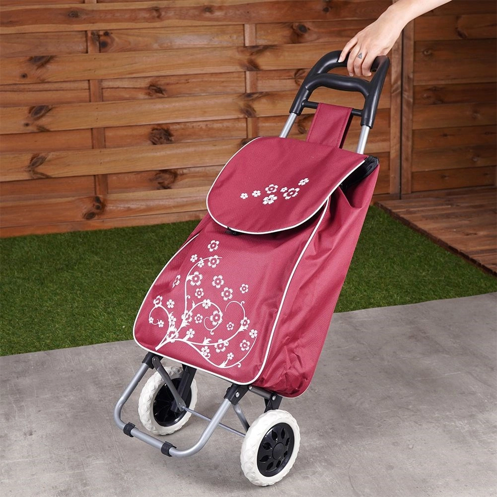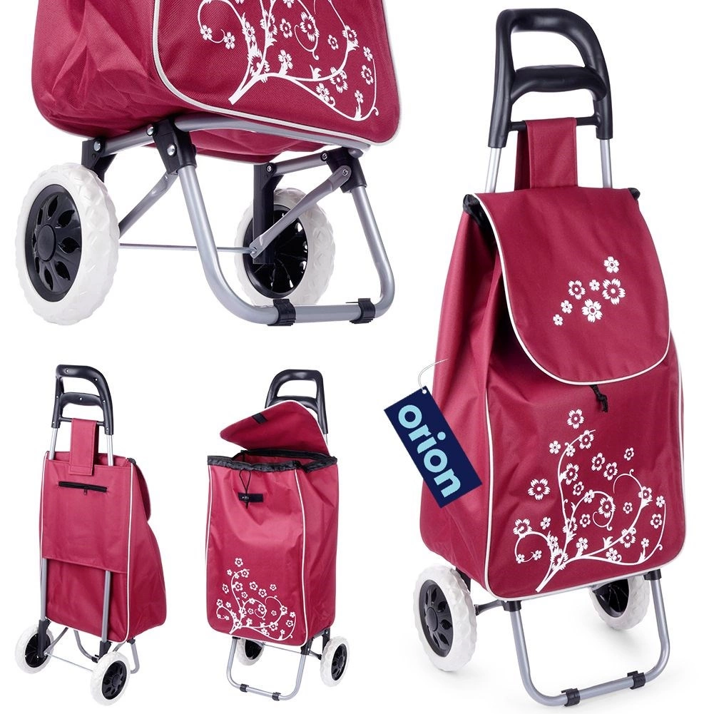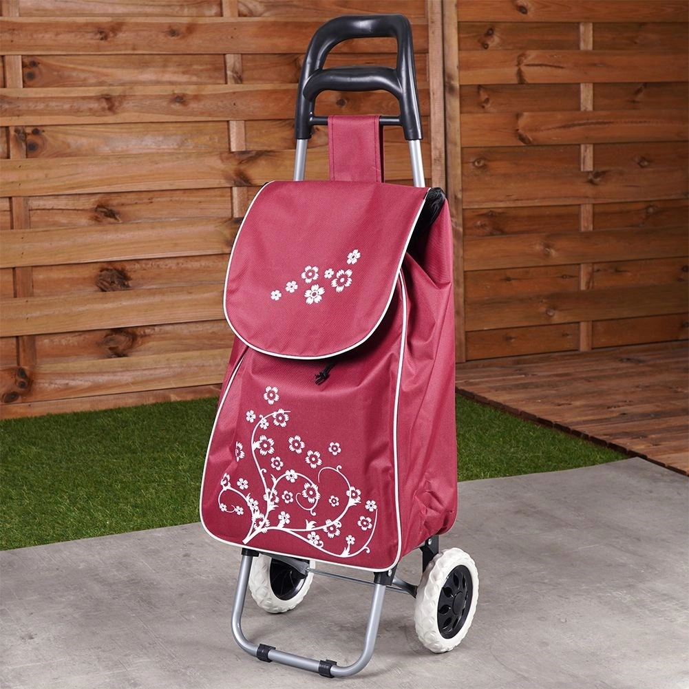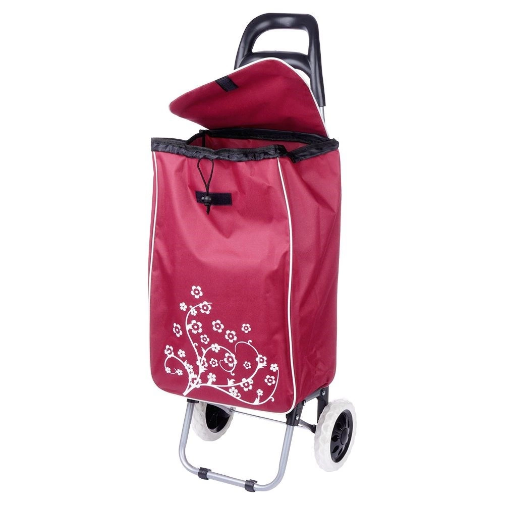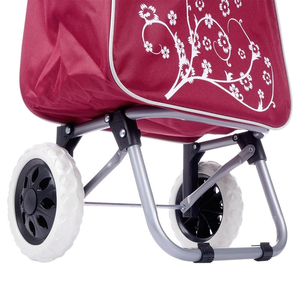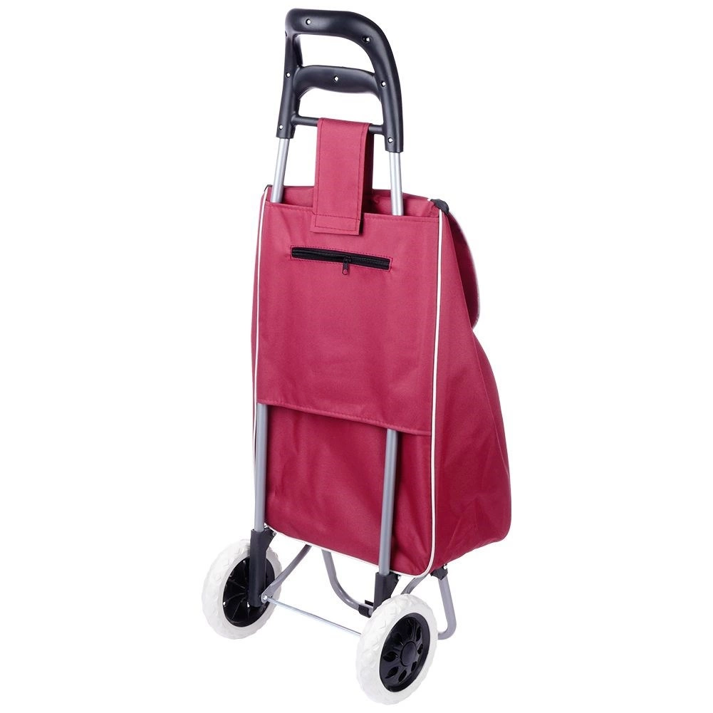 Πρακτικό καρότσι αγορών με χωρητικότητα 30 l σε κομψό μπορντό χρώμα που διευκολύνει τις καθημερινές αγορές και προστατεύει την πλάτη. Χάρη στη σταθερή μεταλλική κατασκευή, τους μεγάλους τροχούς και τη μέγιστη αντοχή έως 25 kg, μεταφέρετε άνετα και βαρύτερο φορτίο. Η τσάντα διαθέτει κορδόνι σύσφιξης, κλείσιμο με καπάκι και πίσω τσέπη με φερμουάρ για μικροαντικείμενα. Εύκολος χειρισμός και συντήρηση για απροβλημάτιστη χρήση.