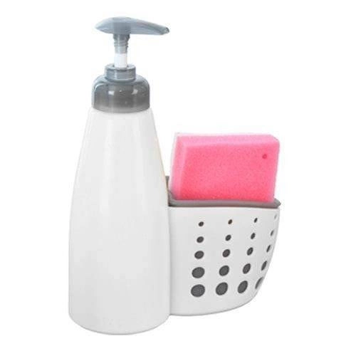 Τέλος τα αντιαισθητικά μπουκάλια γύρω από τον νεροχύτη. Ο κομψός διανομέας με θήκη σάς επιτρέπει να αποθηκεύετε προϊόν και σφουγγάρι σε ένα σημείο. Το αφαιρούμενο καλαθάκι καθαρίζεται εύκολα και τα ανοίγματα αερισμού βοηθούν στο ταχύτερο στέγνωμα, ώστε το σφουγγάρι να παραμένει φρέσκο για περισσότερο. Η συσκευασία περιλαμβάνει και διπλής όψης σφουγγάρι για καθημερινό πλύσιμο.