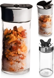 Πρακτικό γυάλινο βαζάκι μπαχαρικών χωρητικότητας 100 ml με διπλή σίτα και καπάκι flip για εύκολη δοσομέτρηση μπαχαρικών και βοτάνων. Χάρη στο διάφανο γυαλί έχετε πάντα τον έλεγχο του περιεχομένου, ενώ τα κλείστρα εξασφαλίζουν μεγαλύτερη φρεσκάδα και άρωμα. Στιλάτο αξεσουάρ για την κουζίνα και τους επαγγελματικούς χώρους εστίασης.