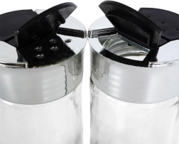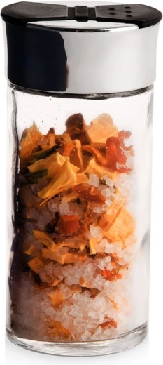 Πολυχρηστικό βαζάκι μπαχαρικών από καθαρό γυαλί με μεταλλικής όψης δακτύλιο και μαύρο διπλό καπάκι flip, που προσφέρει άνετη και ακριβή δοσομέτρηση μπαχαρικών. Δύο τύποι ανοιγμάτων επιτρέπουν πασπάλισμα για λεπτά ή πιο χονδρά μπαχαρικά χωρίς κίνδυνο υπερδοσολογίας. Τα κλείστρα που κλείνουν προστατεύουν το περιεχόμενο από την υγρασία και βοηθούν στη διατήρηση της φρεσκάδας και του αρώματος.