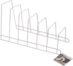 Πρακτικός μεταλλικός οργανωτής κουζίνας για κάθετη αποθήκευση έως 6 τεμαχίων – καπακιών, πιάτων ή σανίδων κοπής. Η σταθερή συρμάτινη κατασκευή σε λευκό χρώμα εξοικονομεί χώρο σε ντουλάπια και συρτάρια, προσφέρει τακτοποίηση και προστατεύει τα καπάκια από γρατζουνιές. Καθαρίζεται εύκολα και ταιριάζει άψογα σε μοντέρνες και κλασικές κουζίνες.