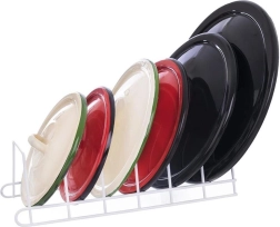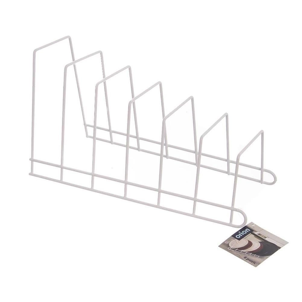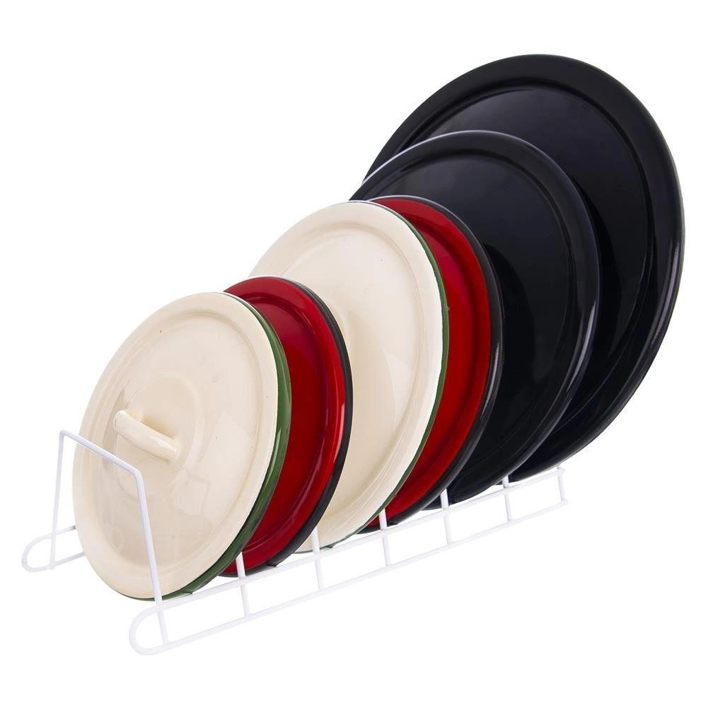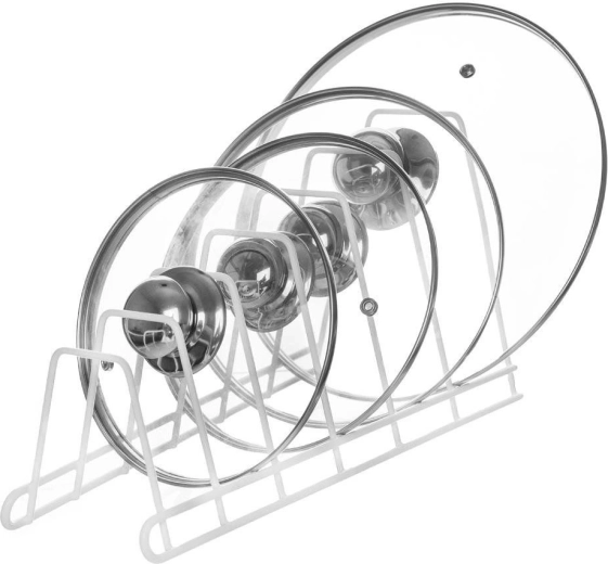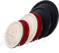 Κρατήστε την κουζίνα τακτοποιημένη με τη συμπαγή βάση 6 θέσεων. Η ανοιχτή συρμάτινη κατασκευή διατηρεί καπάκια, ρηχά πιάτα και σανίδες τακτοποιημένα και με γρήγορη πρόσβαση, ενώ αποτρέπει τη μετακίνηση και τις φθορές τους. Τοποθετείται στον πάγκο, στο ντουλάπι ή σε βαθύ συρτάρι.