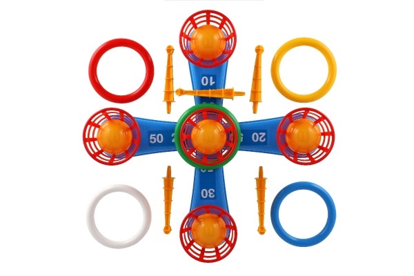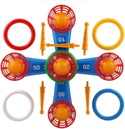 Αυτό το διασκεδαστικό παιχνίδι είναι ιδανικό για μικρά παιδιά. Περιλαμβάνει σταυρό με πέντε ακίδες, στις οποίες τα παιδιά ρίχνουν πολύχρωμα πλαστικά δαχτυλίδια με σκοπό τη συλλογή πόντων. Κάθε ρίψη όπου το δαχτυλίδι καταλήγει στην ακίδα αποφέρει πόντους, ενισχύοντας τον ανταγωνισμό και την ακρίβεια. Η δεύτερη παραλλαγή λειτουργεί με την ίδια αρχή, αλλά οι ακίδες έχουν αντικατασταθεί από καλαθάκια για μπαλάκια, προσφέροντας νέα πρόκληση.