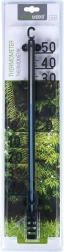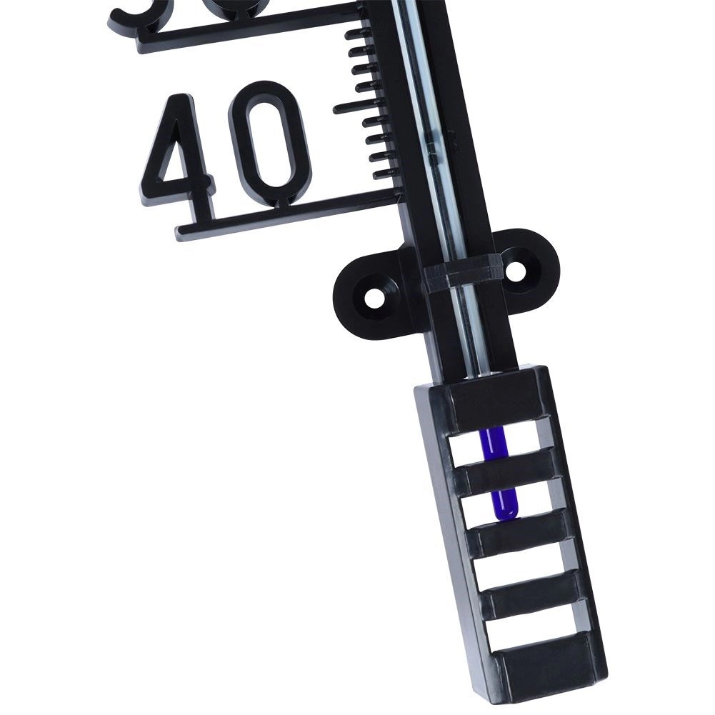 Το θερμόμετρο είναι κατασκευασμένο από ποιοτικό, ανθεκτικό πλαστικό σε κομψό μαύρο χρώμα, που αντέχει σε βροχή, ήλιο και παγετό. Η εγκατάσταση είναι απλή – οι οπές στερέωσης επιτρέπουν γρήγορη τοποθέτηση σε πρόσοψη, ξύλινο φράχτη ή κήπιo στέγαστρο.