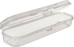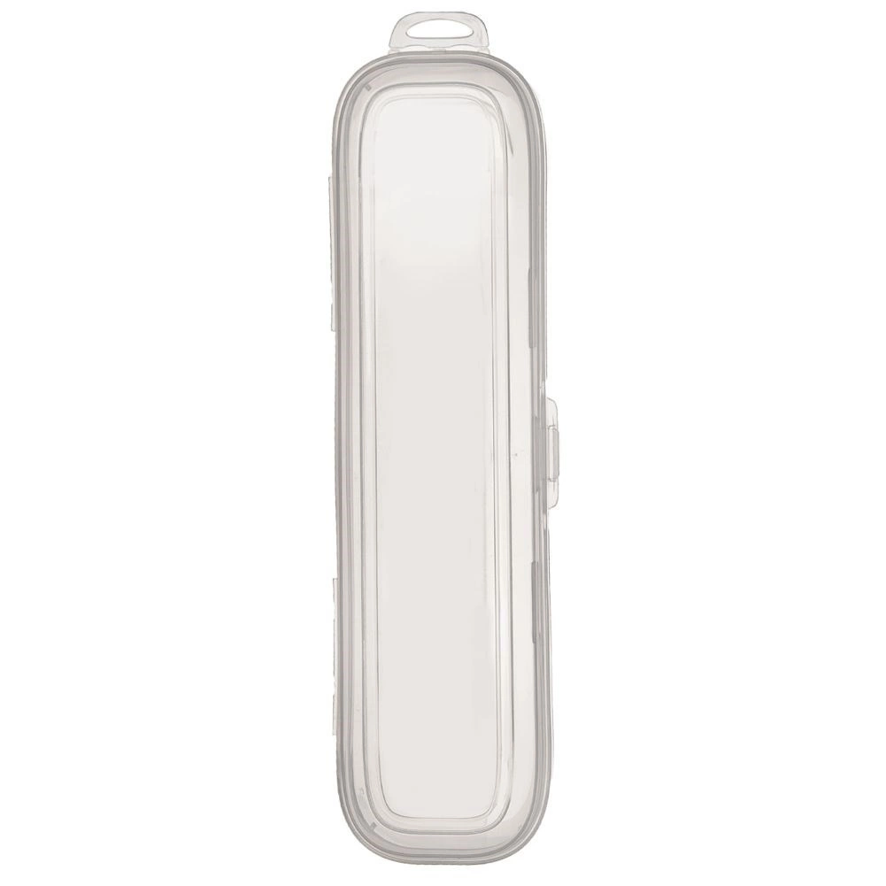 Πρακτική διαφανής θήκη για ασφαλή αποθήκευση και μεταφορά οδοντόβουρτσων, γυαλιών, μαχαιροπίρουνων ή καλλυντικών. Ανθεκτική κατασκευή από πλαστικό, αξιόπιστο κούμπωμα snap και θηλιά για κρέμασμα την καθιστούν ιδανικό σύντροφο για ταξίδια και για το σχολείο. Διαστάσεις 25 × 6 × 4 cm.
