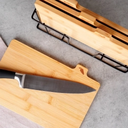 Το μπαμπού είναι σκληρό, σταθερό υλικό που δεν απορροφά οσμές και στεγνώνει γρήγορα. Είναι φιλικό στις λεπίδες των μαχαιριών και κατάλληλο για καθημερινή χρήση.