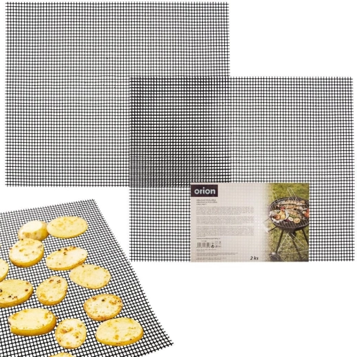 Πρακτικό τεφλονένιο πλέγμα ψησίματος με διχτυωτή επιφάνεια διαστάσεων 40 × 33 cm, σε οικονομική συσκευασία 2 τεμαχίων. Είναι πολλαπλών χρήσεων, αντικολλητικό, ανθεκτικό έως 260 °C και κατάλληλο για πλυντήριο πιάτων. Επιτρέπει το ψήσιμο ακόμη και μικρών κομματιών κρέατος, λαχανικών ή θαλασσινών που διαφορετικά θα έπεφταν μέσα στη σχάρα, και εξασφαλίζει ότι το φαγητό θα ψηθεί πραγματικά και δεν θα βράσει στον ατμό.