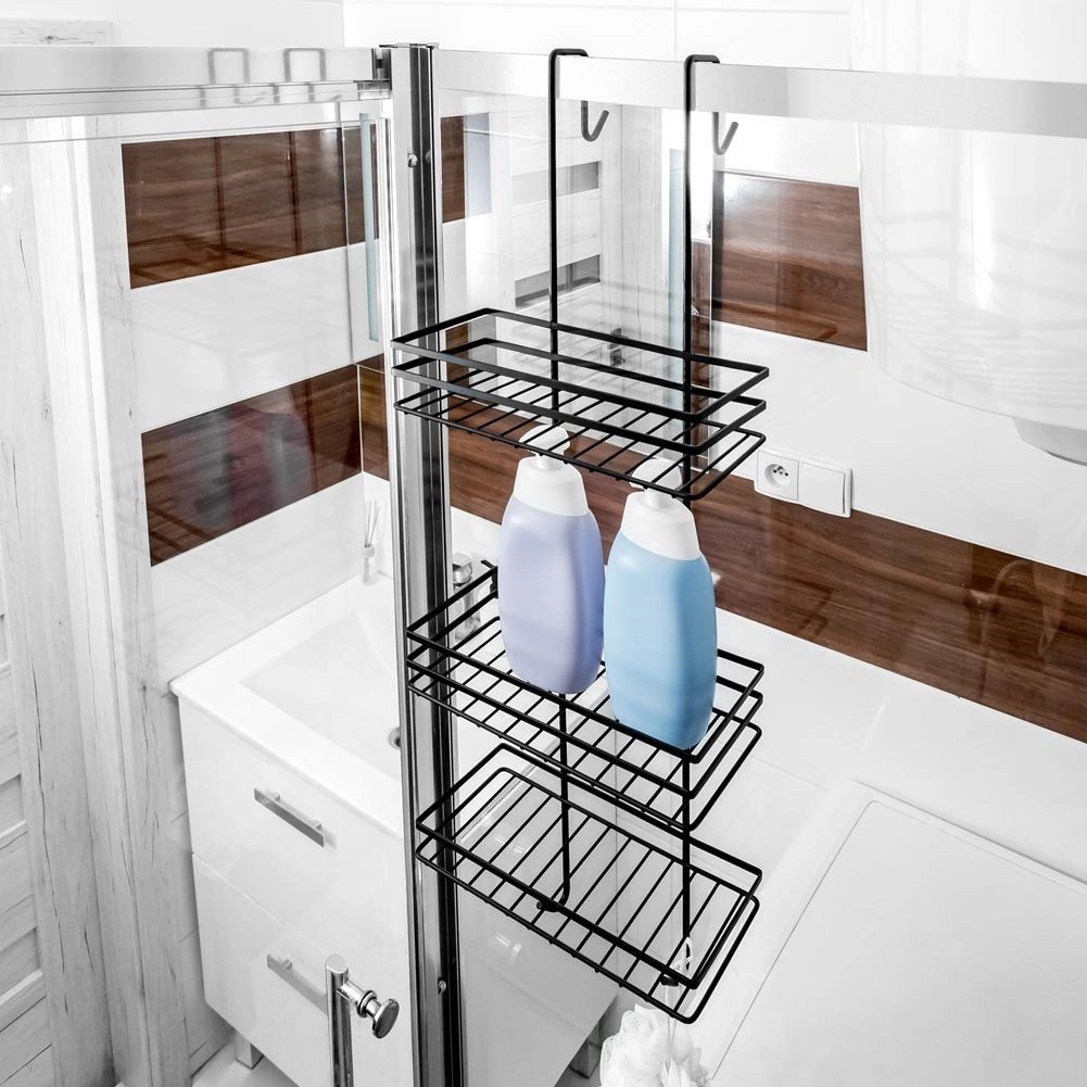 Το ράφι διαθέτει 3 επίπεδα αποθήκευσης για σαμπουάν, κοντίσιονερ, σαπούνια και μεγαλύτερες συσκευασίες καθώς και 4 πρακτικούς γάντζους – δύο εσωτερικά για σφουγγάρια και βούρτσες και δύο εξωτερικά για πετσέτες ή μπουρνούζια. Το κρεμάτε εύκολα στο επάνω άκρο του γυάλινου τοιχώματος της καμπίνας ντους και το αφαιρείτε το ίδιο εύκολα οποιαδήποτε στιγμή.
