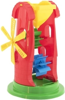 Προσφέρει διπλές δυνατότητες παιχνιδιού – τα παιδιά μπορούν να ρίχνουν άμμο ή να χύνουν νερό και να παρακολουθούν τα γρανάζια να περιστρέφονται.