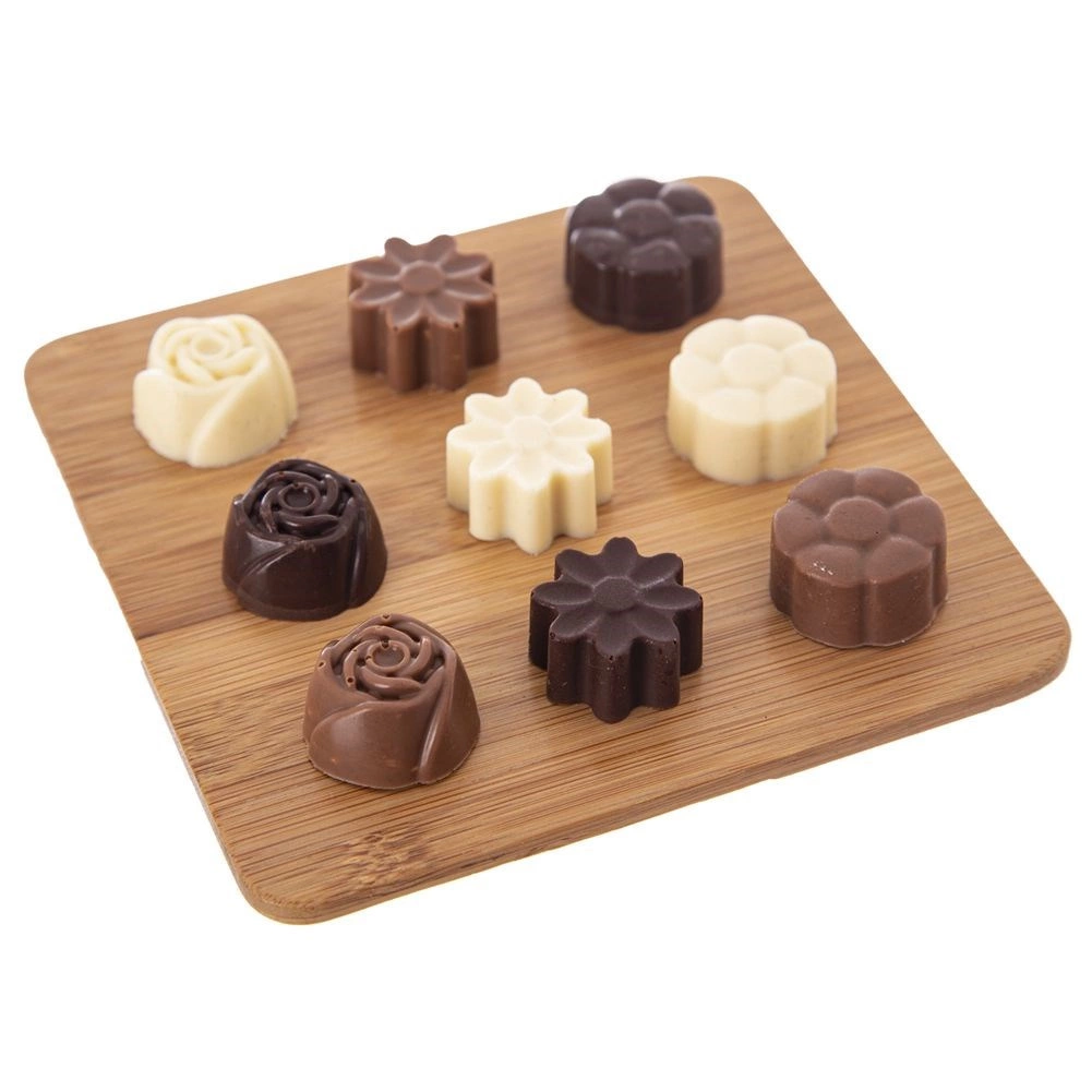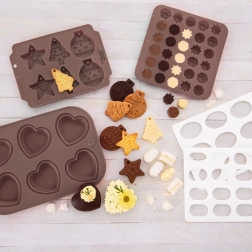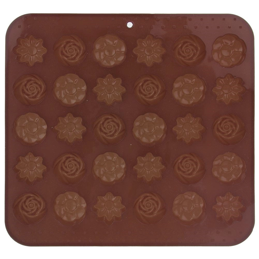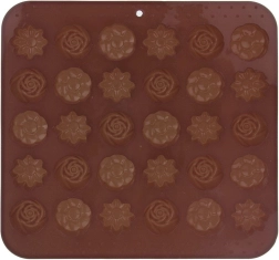 Ανακαλύψτε τη χαρά της σπιτικής παρασκευής σοκολατένιων πραλινών και μίνι μπισκότων. Η φόρμα σιλικόνης Sillinie με διαστάσεις 21 × 20,5 cm προσφέρει 30 κοιλότητες περίπου 2,8 × 2,8 cm, σε τρία κομψά ανθόμορφα μοτίβα. Χάρη στη ποιοτική σιλικόνη το μείγμα δεν κολλά, οι λιχουδιές ξεφορμάρονται εύκολα και η φόρμα δεν απορροφά οσμές ή γεύσεις.