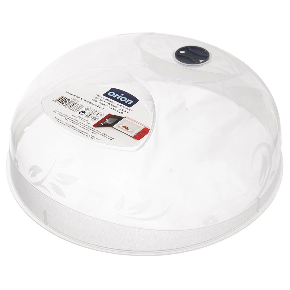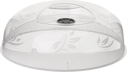 Πρακτικό διαφανές κάλυμμα για φούρνο μικροκυμάτων με διάμετρο 29 cm και ύψος 11 cm που προστατεύει αξιόπιστα από πιτσιλιές και το στέγνωμα των φαγητών. Διαθέτει κλειδωτό ατμοπαραγωγό/βαλβίδα ατμού για ρύθμιση υγρασίας, άνετη λαβή για εύκολη αφαίρεση και είναι κατασκευασμένο από ανθεκτικό υλικό χωρίς BPA. Το κάλυμμα είναι κατάλληλο για πλυντήριο πιάτων και αντέχει θερμοκρασίες έως +95 °C.