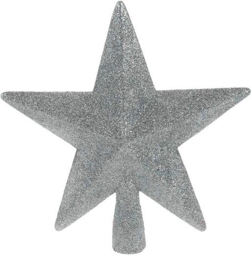 Κομψή κορυφή δέντρου σε σχήμα λαμπερού ασημί αστεριού μεγέθους 19 × 19,5 cm, που χαρίζει στο δέντρο σας εορταστική λάμψη. Κατασκευασμένη από ανθεκτικό, άθραυστο πλαστικό, είναι ασφαλής για σπίτια με παιδιά και κατοικίδια και, χάρη στο πρακτικό τελείωμα, τοποθετείται εύκολα και σταθερά στην κορυφή του δέντρου.
