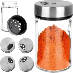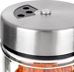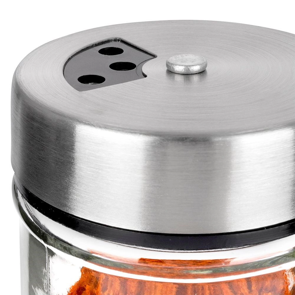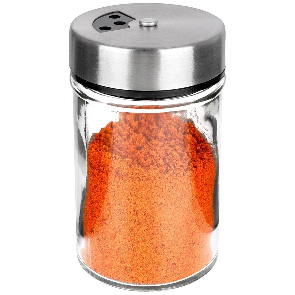 Κομψό βαζάκι μπαχαρικών από διάφανο γυαλί με καπάκι από ανοξείδωτο ατσάλι και πλαστικό διανομέα, ιδανικό για καθημερινή χρήση στην κουζίνα. Χάρη σε δύο μεγέθη οπών, προσαρμόζετε εύκολα το λεπτό ή πιο χονδρό πασπάλισμα και ρίχνετε πάντα ακριβώς όσο χρειάζεστε. Ο μηχανισμός κλεισίματος διατηρεί τα μπαχαρικά ευωδιαστά και φρέσκα για περισσότερο.