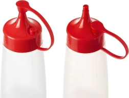 Πρακτικό μπουκάλι δοσομέτρησης χωρητικότητας 340 ml για ακριβή σερβίρισμα σαλτσών, κέτσαπ, μουστάρδας ή λαδιού. Χάρη στο ημιδιαφανές σώμα έχετε πάντα εικόνα του περιεχομένου, τα μαλακά τοιχώματα επιτρέπουν εύκολο σφίξιμο και το κόκκινο καπάκι με πώμα εξασφαλίζει ασφαλές κλείσιμο χωρίς σταξίματα. Ιδανικό για οικιακή και επαγγελματική κουζίνα, καθώς και για διακόσμηση γλυκών με γλάσο ή σοκολάτα.