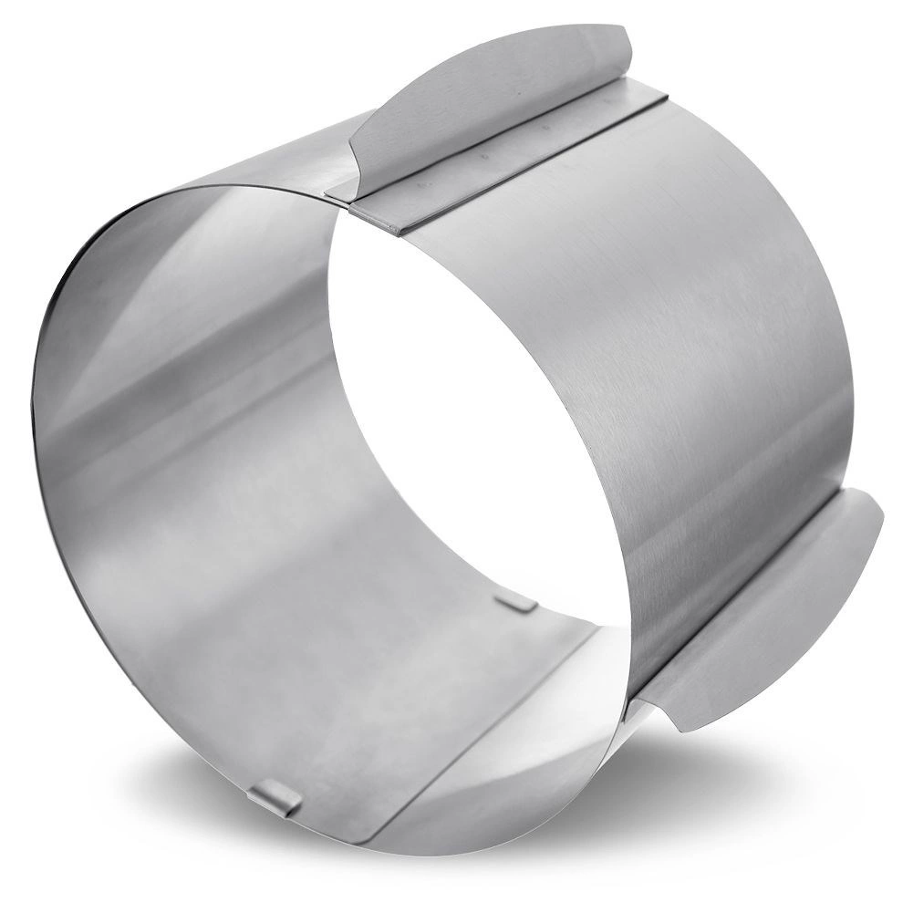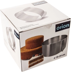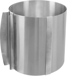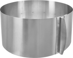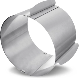 Πολυχρηστικό στρογγυλό τσέρκι για ψήσιμο και στρώσεις κέικ με εύκολη ρύθμιση διαμέτρου 16–30 cm και ύψος 14,5 cm. Κατασκευασμένο από ποιοτικό ανοξείδωτο ατσάλι για μεγάλη αντοχή, με χαραγμένη κλίμακα στο εσωτερικό για ακριβή ρύθμιση και δύο κλιπ για ασφαλές κλείδωμα. Εξαιρετικός βοηθός για ίσιες πλευρές και ομοιόμορφο σχήμα βάσεων σε κάθε τύπο φούρνου.