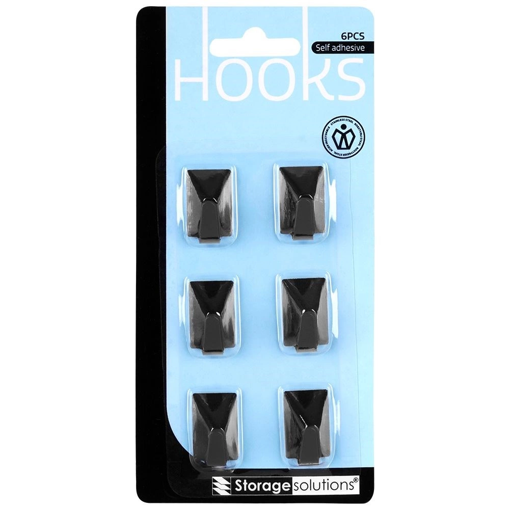 Στιλάτες και πρακτικές αυτοκόλλητες κρεμάστρες σε ματ μαύρο για την καθημερινή οργάνωση σε κουζίνα και μπάνιο. Το σετ 6 τεμαχίων από ανοξείδωτο ατσάλι προσφέρει εύκολη τοποθέτηση χωρίς τρύπημα, σταθερό κράτημα και πολυμορφική χρήση για πετσέτες, πανιά, κλειδιά ή καλώδια.