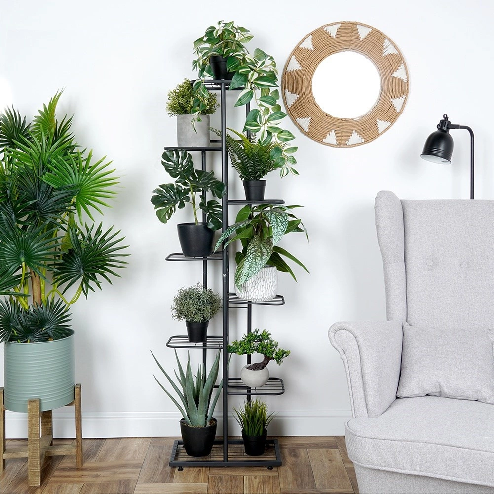 Αυτή η πολυεπίπεδη βάση για φυτά είναι ιδανική επιλογή για τους λάτρεις της πρασινάδας που θέλουν να εκθέτουν τα φυτά κατακόρυφα εξοικονομώντας ταυτόχρονα χώρο δαπέδου. Χάρη στο συμπαγές πλάτος και το ύψος 142 cm δημιουργεί εντυπωσιακό πράσινο τοίχο στο σαλόνι, την κουζίνα, το γραφείο ή σε σκεπαστό μπαλκόνι.