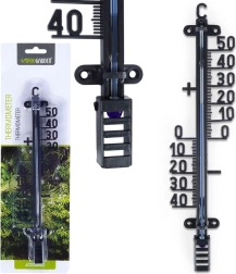 Κομψό θερμόμετρο κλασικού σχεδιασμού που μετρά αξιόπιστα τη θερμοκρασία περιβάλλοντος σε εσωτερικούς και εξωτερικούς χώρους. Οι μεγάλοι αριθμοί και τα έντονα σημάδια προσφέρουν εξαιρετική ευαναγνωσία ακόμη και από μεγαλύτερη απόσταση. Χάρη στις συμπαγείς διαστάσεις 6 × 2,5 × 25 cm ταιριάζει σε τοίχο σπιτιού, πέργκολα, μπαλκόνι ή σε διάδρομο.
