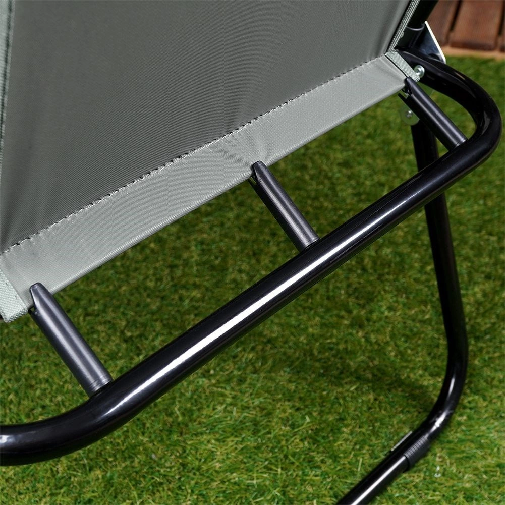 Η καρέκλα είναι κατασκευασμένη από ποιοτικά υλικά: ανθεκρό ύφασμα πολυεστέρα σε γκρι χρώμα για αντοχή στην καθημερινή χρήση, μαύρο μεταλλικό πλαίσιο για σταθερότητα και μεγάλη διάρκεια ζωής και πλαστικά μπράτσα για επιπλέον άνεση στο κάθισμα. Η κατασκευή επιτρέπει γρήγορο άνοιγμα και κλείσιμο μέσα σε λίγα δευτερόλεπτα.
