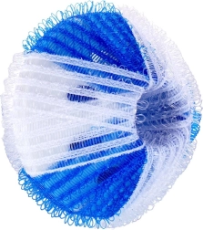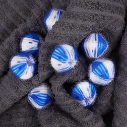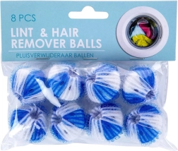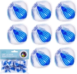 Πρακτικό σετ 8 μπαλών πλυντηρίου διαμέτρου 3,5 cm που βοηθούν κατά το πλύσιμο να παγιδεύουν τις τρίχες, τις ίνες και τα χνούδια, προστατεύουν τα ρούχα και το πλυντήριο και αυξάνουν την αποτελεσματικότητα του απορρυπαντικού. Οι ανθεκτικές μπάλες σε λευκό-μπλε χρώμα έχουν απαλή δικτυωτή υφή που είναι φιλική προς τα υφάσματα και μπορούν να χρησιμοποιούνται επανειλημμένα έως τους 60 °C.