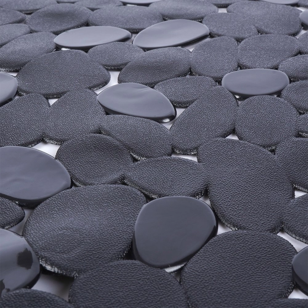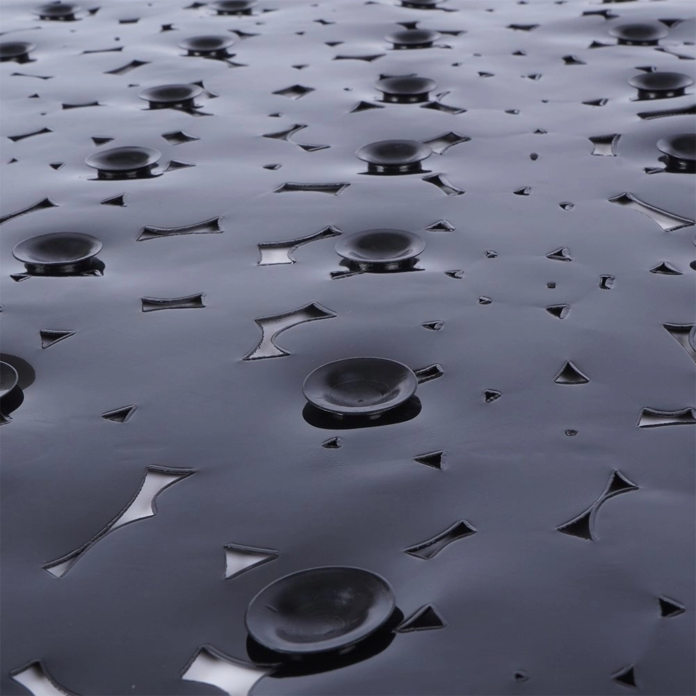 Πρακτικό χαλάκι μπάνιου διαστάσεων 51 × 51 cm που εξασφαλίζει ασφαλές και σταθερό βήμα στο ντους, στη μπανιέρα και στη ντουζιέρα. Χάρη στο πυκνό δίκτυο βεντουζών προσκολλάται σταθερά σε λεία επιφάνεια, περιορίζει την ολίσθηση σε υγρό πάτωμα και είναι ταυτόχρονα ανθεκτικό στο νερό και την υγρασία. Η κομψή μαύρη απόχρωση ταιριάζει σε κάθε μπάνιο.