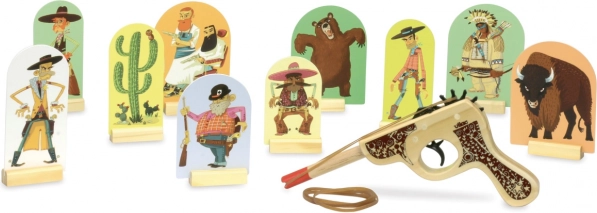Στήστε τους στόχους, τεντώστε το λαστιχάκι και προκαλέστε την οικογένεια ή τους φίλους σε μονομαχία στο σαλόνι. Η ποιοτική ξύλινη κατασκευή εξασφαλίζει ανθεκτικότητα και μεγάλη διάρκεια ζωής, ενώ ο ελκυστικός γουέστερν σχεδιασμός θα ενθουσιάσει τους μικρούς πιστολάδες.