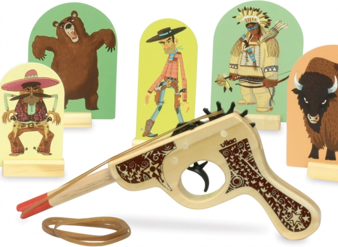 Το ξύλινο γουέστερν πιστόλι με στόχους VILAC προσφέρει έναν ασφαλή και διασκεδαστικό τρόπο ανταγωνισμού. Τα παιδιά, μέσα από το παιχνίδι, αναπτύσσουν τον συντονισμό χεριού-ματιού, μαθαίνουν να συγκεντρώνονται και εξασκούν την υπομονή. Ο απλός μηχανισμός με λαστιχάκι είναι εύκολος στη χρήση και κατάλληλος για μικρά παιδιά.