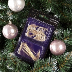Πρακτικό σετ από 150 χρυσά γαντζάκια για κρέμασμα χριστουγεννιάτικων στολιδιών και μπαλών στο δέντρο. Περιλαμβάνει 100 μικρότερα (4 cm) και 50 μεγαλύτερα (6 cm) γαντζάκια, τα οποία είναι ανθεκτικά, επαναχρησιμοποιούμενα και, χάρη στην εργονομική τους μορφή, επιτρέπουν γρήγορο και ασφαλές κρέμασμα ακόμη και για παιδιά.