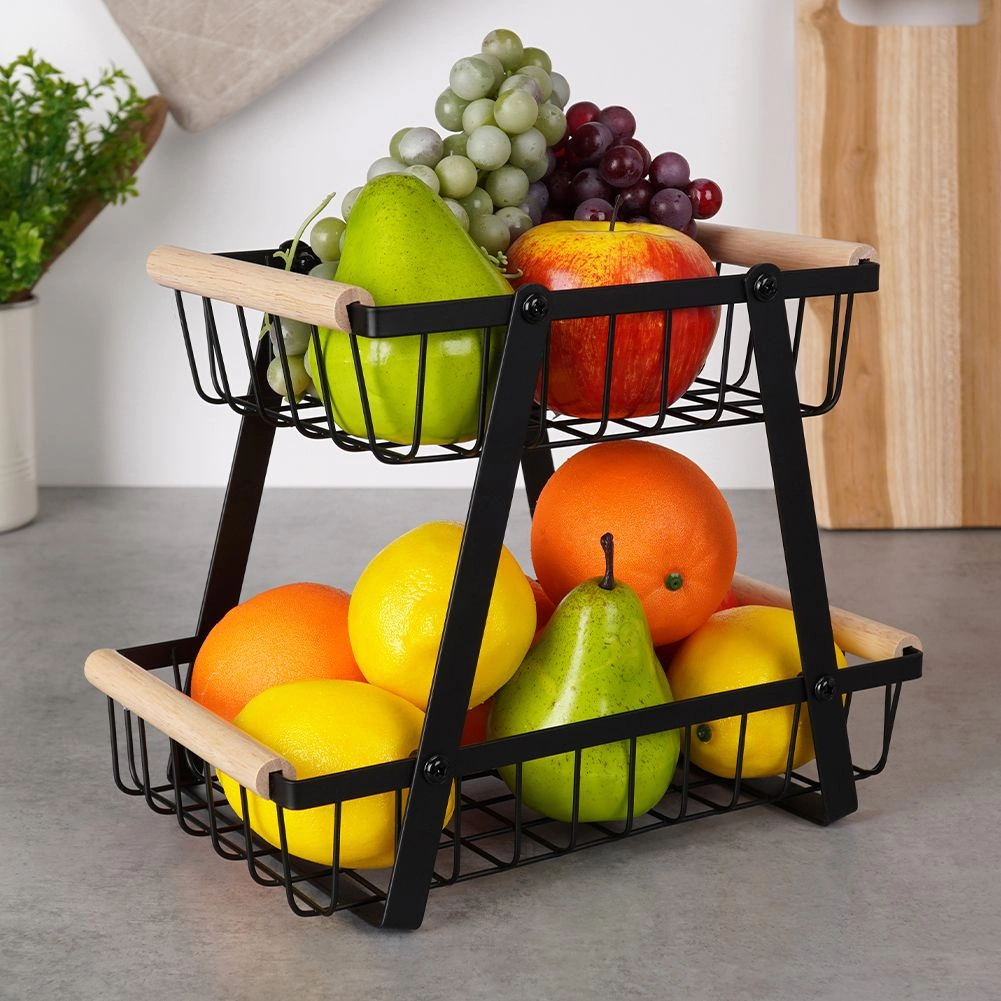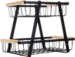Αυτός ο διώροφος μεταλλικός οργανωτής συνδυάζει μοντέρνα βιομηχανική εμφάνιση με υψηλή λειτουργικότητα. Τα ανοιχτά συρμάτινα τοιχώματα εξασφαλίζουν βέλτιστη ροή αέρα, ώστε τα φρούτα και τα λαχανικά να διατηρούν τη φρεσκάδα τους για περισσότερο. Οι ξύλινες λαβές προσφέρουν άνετη μεταφορά και όλη η βάση είναι ανθεκτική και σταθερή χάρη στην στιβαρή κατασκευή.