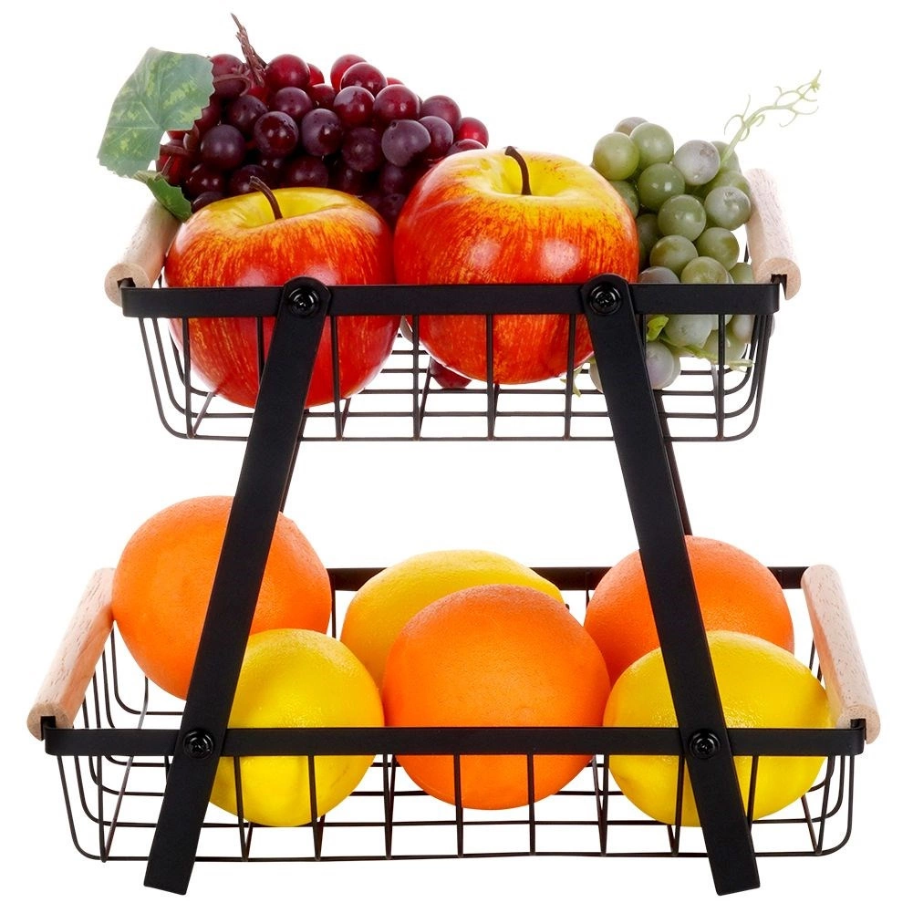 Δύο καλάθια το ένα πάνω από το άλλο επιτρέπουν τον διαχωρισμό των φρούτων και λαχανικών και κρατούν τον πάγκο τακτοποιημένο.