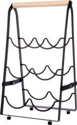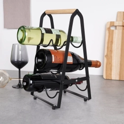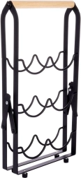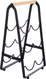Κομψή και σταθερή βάση για κρασί για έως 6 φιάλες σε μοντέρνο μαύρο χρώμα με ξύλινη λαβή. Χάρη στην οριζόντια τοποθέτηση των φιαλών διατηρεί τους φελλούς υγρούς και εξασφαλίζει τη σωστή ωρίμανση του κρασιού. Ανθεκτική μεταλλική κατασκευή, αντιολισθητικά ποδαράκια και συμπαγείς διαστάσεις 21 × 17 × 38 cm την καθιστούν πρακτικό αξεσουάρ για την κουζίνα, την τραπεζαρία ή το οικιακό μπαρ. Ο πτυσσόμενος σχεδιασμός διευκολύνει τη μεταφορά και την αποθήκευση.