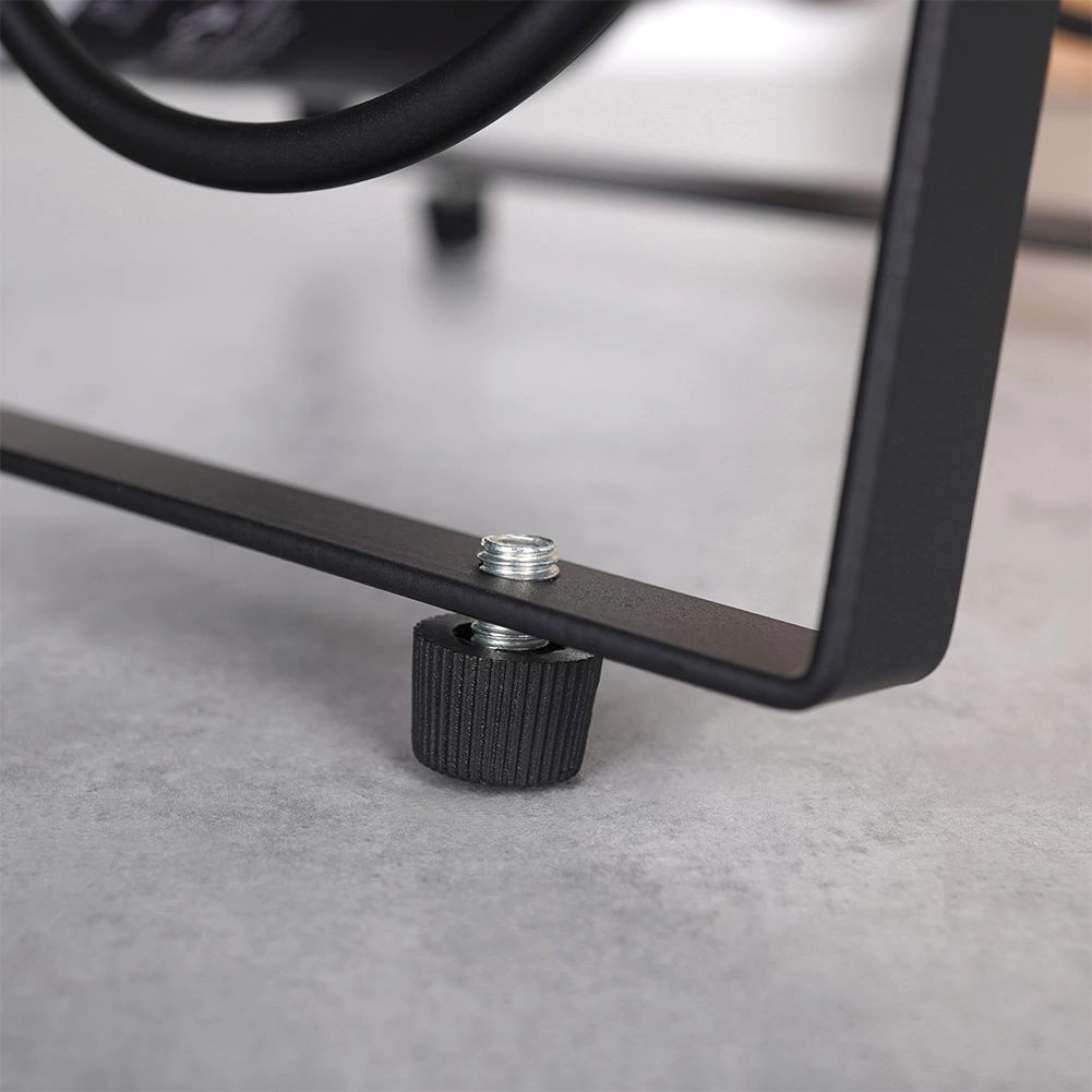 Αυτή η σχεδιαστική βάση κρασιού σε loft ύφος συνδυάζει ματ μαύρο μέταλλο με φυσικό ξύλο, ταιριάζοντας άψογα σε μοντέρνους εσωτερικούς χώρους. Η οριζόντια τοποθέτηση των φιαλών προάγει τη σωστή αποθήκευση – οι φελλοί παραμένουν υγροί και το κρασί διατηρεί την ποιότητά του. Χάρη στην πρακτική λαβή, τη μεταφέρετε εύκολα και την τοποθετείτε στον πάγκο της κουζίνας, στη συρταριέρα ή στον πάγκο του μπαρ.