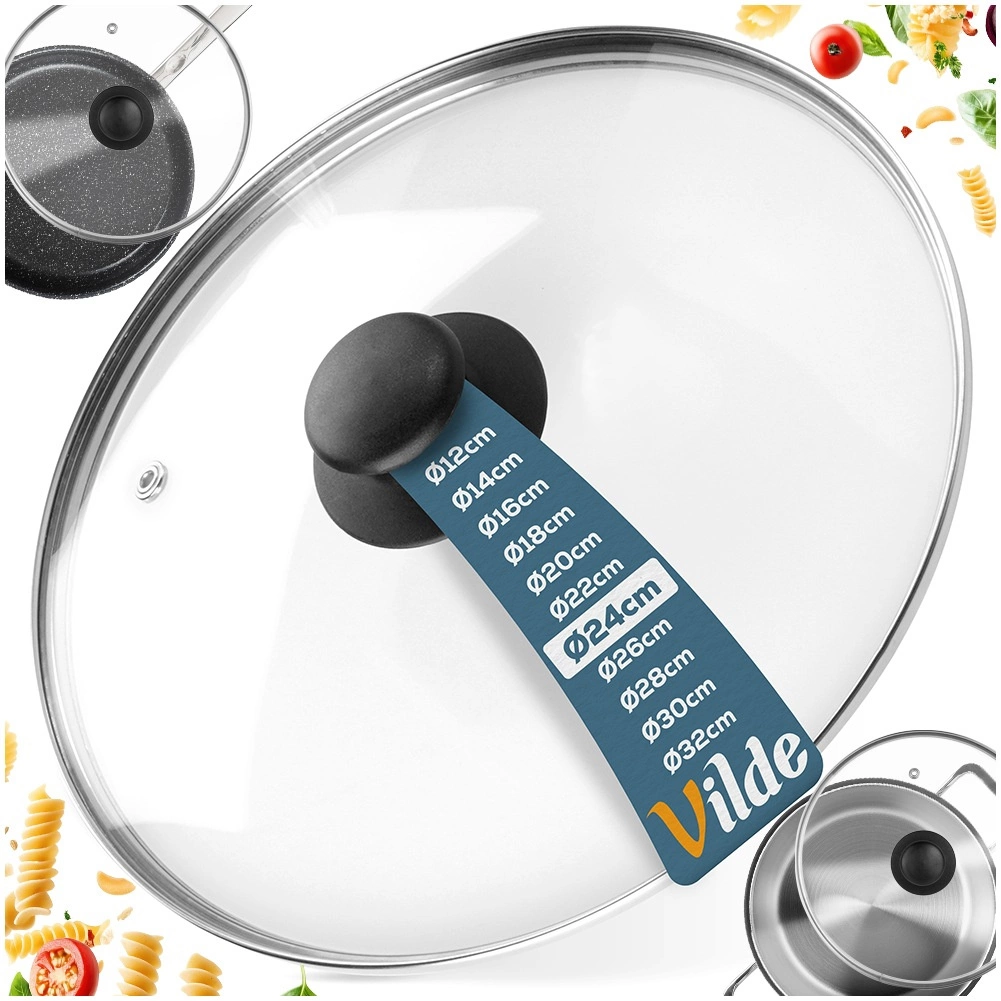 Πρακτικό γυάλινο καπάκι που ταιριάζει σε κατσαρόλες, τηγάνια και κατσαρολάκια διαμέτρου 24 cm. Είναι κατασκευασμένο από ανθεκτικό στη θερμότητα, διαφανές γυαλί με ανοξείδωτο στεφάνι σε ασημί χρώμα και ανθεκτική πλαστική λαβή σε μαύρο χρώμα. Το ελαφρώς θολωτό σχήμα βοηθά στην κυκλοφορία του θερμού αέρα και επιταχύνει την προετοιμασία των φαγητών.
