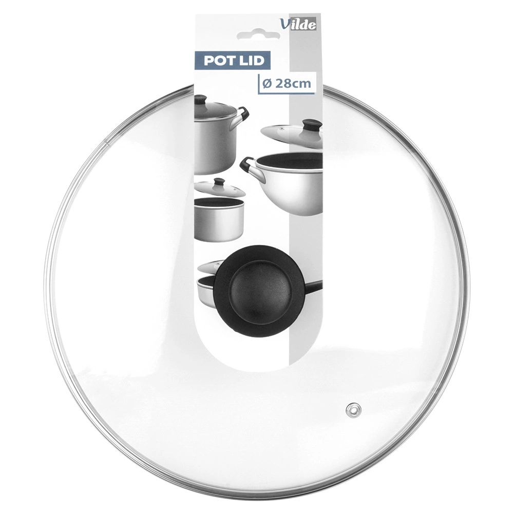 Πρακτικό καπάκι από ανθεκτικό στη θερμότητα, διάφανο γυαλί, ιδανικό για κατσαρόλες, τηγάνια και κατσαρολάκια διαμέτρου 28 cm. Το ανθεκτικό ανοξείδωτο περίγραμμα αυξάνει τη διάρκεια ζωής, ενώ η εργονομική λαβή από ανθεκτικό υλικό διευκολύνει τον χειρισμό. Χάρη στη διαφάνεια έχετε πλήρη έλεγχο του μαγειρέματος χωρίς περιττές θερμικές απώλειες.