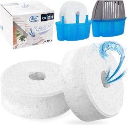 Τα δισκία είναι καθολικά και συμβατά με τους περισσότερους επαναχρησιμοποιούμενους αφυγραντήρες με ανταλλακτικά δισκία. Ένα δισκίο διαρκεί περίπου 2–5 μήνες σε χώρους έως 20 m² (ανάλογα με θερμοκρασία και υγρασία). Ιδανικά και για εποχική χρήση σε τροχόσπιτα, εξοχικά και χώρους αναψυχής. Το προϊόν προέρχεται από την τσεχική μάρκα ORION.