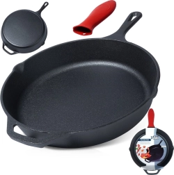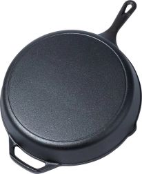 Το συμπαγές χυτοσίδηρο θερμαίνεται ομοιόμορφα και διατηρεί τη θερμότητα για πολύ, ιδανικό για έντονο σοτάρισμα, τηγάνισμα και ψήσιμο χωρίς κρύα σημεία.