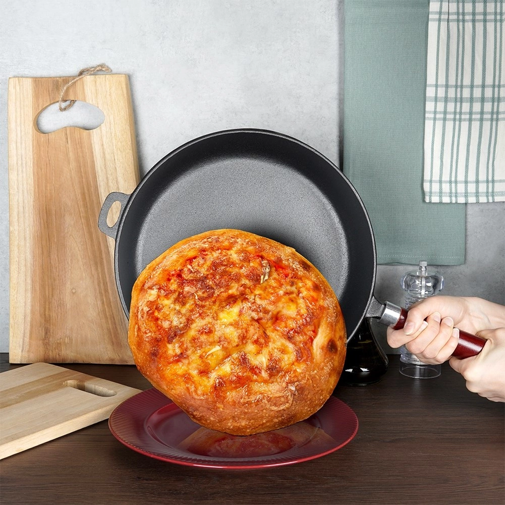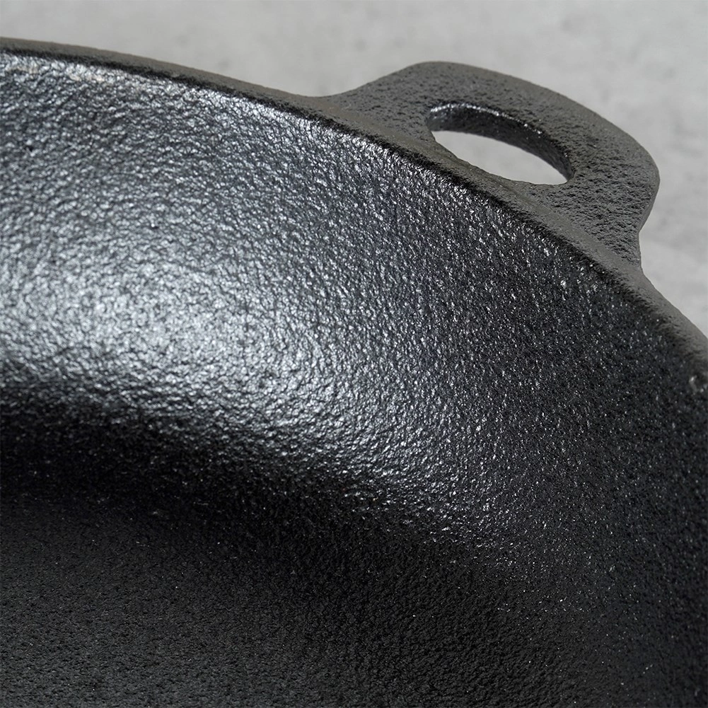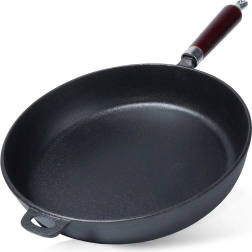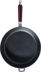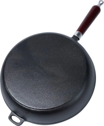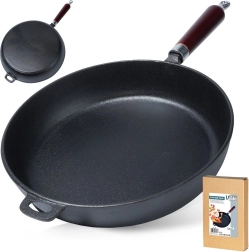Η πρακτική ξύλινη λαβή προσφέρει σίγουρο κράτημα, ενώ το βοηθητικό αυτάκι διευκολύνει τον χειρισμό και το κρέμασμα. Το τηγάνι μπορεί να χρησιμοποιηθεί σε όλους τους τύπους εστιών, συμπεριλαμβανομένης της επαγωγής, καθώς και στη ψησταριά ή σε ανοιχτή φωτιά. Μετά το ξεβίδωμα της λαβής, είναι κατάλληλο και για φούρνο. Χωρίς αντικολλητικές επιστρώσεις – καθαρό μαντέμι για φυσικά αποτελέσματα μαγειρέματος.