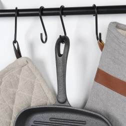 Περιλαμβάνει σιλικονούχο προστατευτικό λαβής σε κόκκινο χρώμα για ασφαλή χρήση και ενσωματωμένες πλευρικές ραμφές χύσης για εύκολο στράγγισμα ζουμιών. Η λαβή με άνοιγμα επιτρέπει το κρέμασμα σε ράγα κουζίνας. Το τηγάνι είναι πολυχρηστικό – για εστία, φούρνο, ψησταριά και κατευθείαν στη φωτιά.