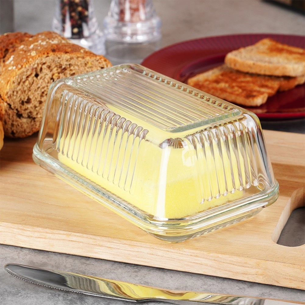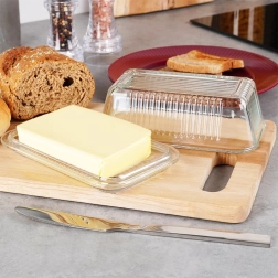 Κατασκευασμένο από ποιοτικό, ανθεκτικό γυαλί που είναι υγιεινό, άοσμο και καθαρίζεται εξαιρετικά. Η διάφανη απόχρωση επιτρέπει γρήγορο έλεγχο της ποσότητας βουτύρου.