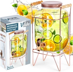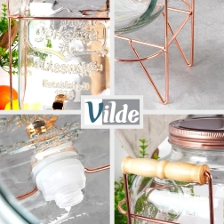 Το φαρδύ στόμιο επιτρέπει να προσθέτετε εύκολα φέτες εσπεριδοειδών, βότανα και κύβους πάγου. Χάρη στο διάφανο γυαλί έχετε πάντα έλεγχο του περιεχομένου και της ποσότητας. Ο διανεμητής δεν είναι κατάλληλος για ζεστά ποτά, προορίζεται για σερβίρισμα κρύων και δροσερών ροφημάτων. Αυθεντικό προϊόν της μάρκας VILDE κατασκευασμένο σύμφωνα με τα ευρωπαϊκά πρότυπα.