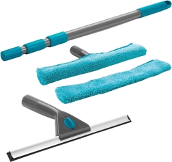 Κάντε πιο εύκολο το πλύσιμο παραθύρων, βιτρινών, χειμερινών κήπων και καθρεφτών με το πρακτικό τηλεσκοπικό πλυστικό με ξύστρα. Χάρη στη ρύθμιση μήκους 57–128 cm φτάνετε άνετα και σε δυσπρόσιτα σημεία χωρίς ανάγκη για σκάλα. Το κάλυμμα μικροΐνας αφαιρεί σχολαστικά τους ρύπους και απορροφά εξαιρετικά το νερό, ενώ η λαστιχένια ξύστρα αφήνει την επιφάνεια τέλεια καθαρή και χωρίς γραμμές.