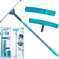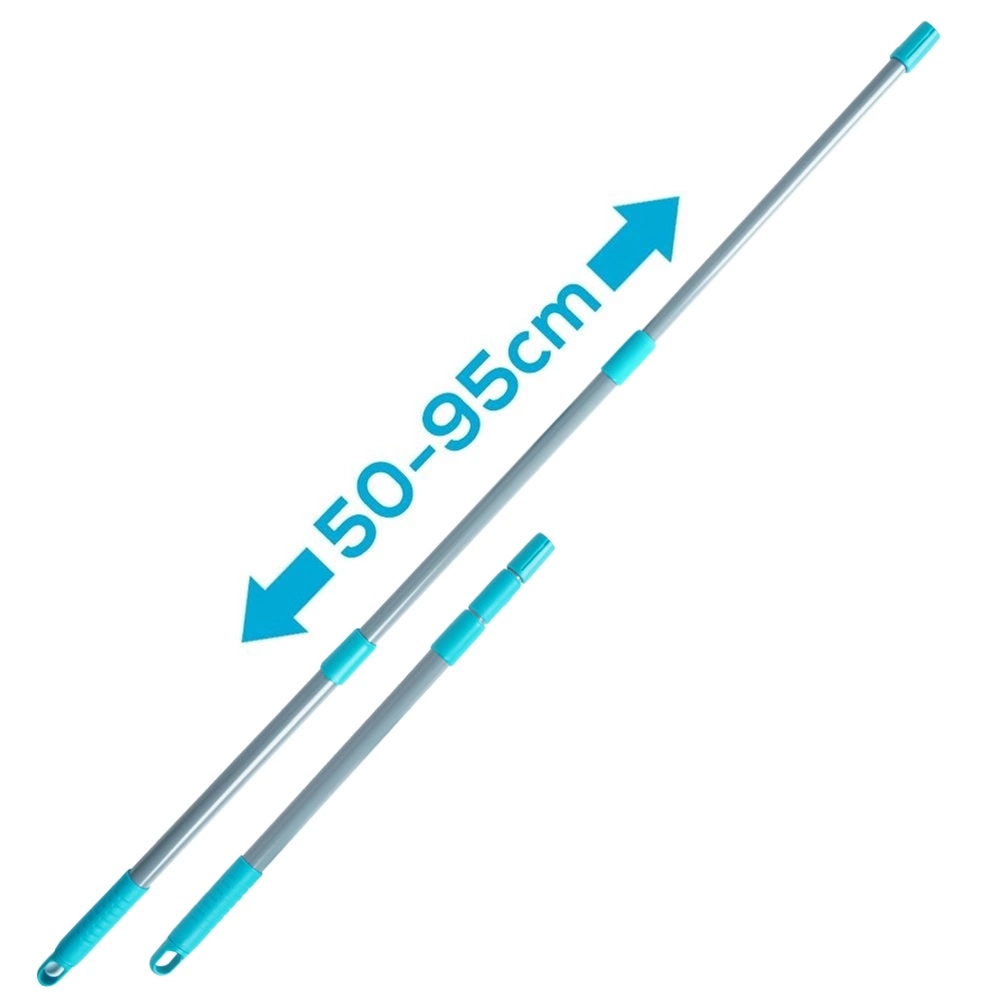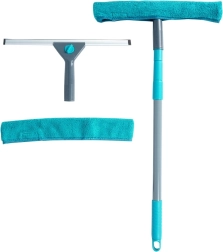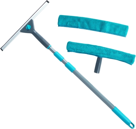 Το σετ περιλαμβάνει ό,τι χρειάζεστε: τηλεσκοπική ράβδο, πλυστική κεφαλή με μικροΐνα, ξύστρα και ανταλλακτικό κάλυμμα. Τα καλύμματα πλένονται εύκολα στο πλυντήριο και επαναχρησιμοποιούνται. Η μεταλλική ράβδος σε γκρι χρώμα με ανθεκτικά πλαστικά μέρη σε τιρκουάζ είναι ελαφριά αλλά στιβαρή και διαθέτει στο άκρο οπές ανάρτησης για εξοικονόμηση χώρου στην αποθήκευση.