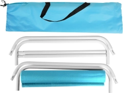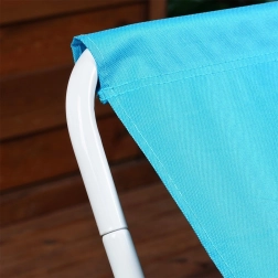 Η ξαπλώστρα έχει σχεδιαστεί για άνετη ξεκούραση σε εξωτερικούς χώρους. Το ανθεκτικό λευκό μεταλλικό πλαίσιο και το στιβαρό πολυεστερικό ύφασμα σε μπλε χρώμα προσφέρουν σταθερότητα και ευχάριστο κάθισμα σε χαμηλή, χαλαρωτική θέση. Με τον έξυπνο πτυσσόμενο μηχανισμό, τη διπλώνετε εύκολα στην παρεχόμενη τσάντα και την παίρνετε μαζί σας στην παραλία, στο πικνίκ ή στις διακοπές.