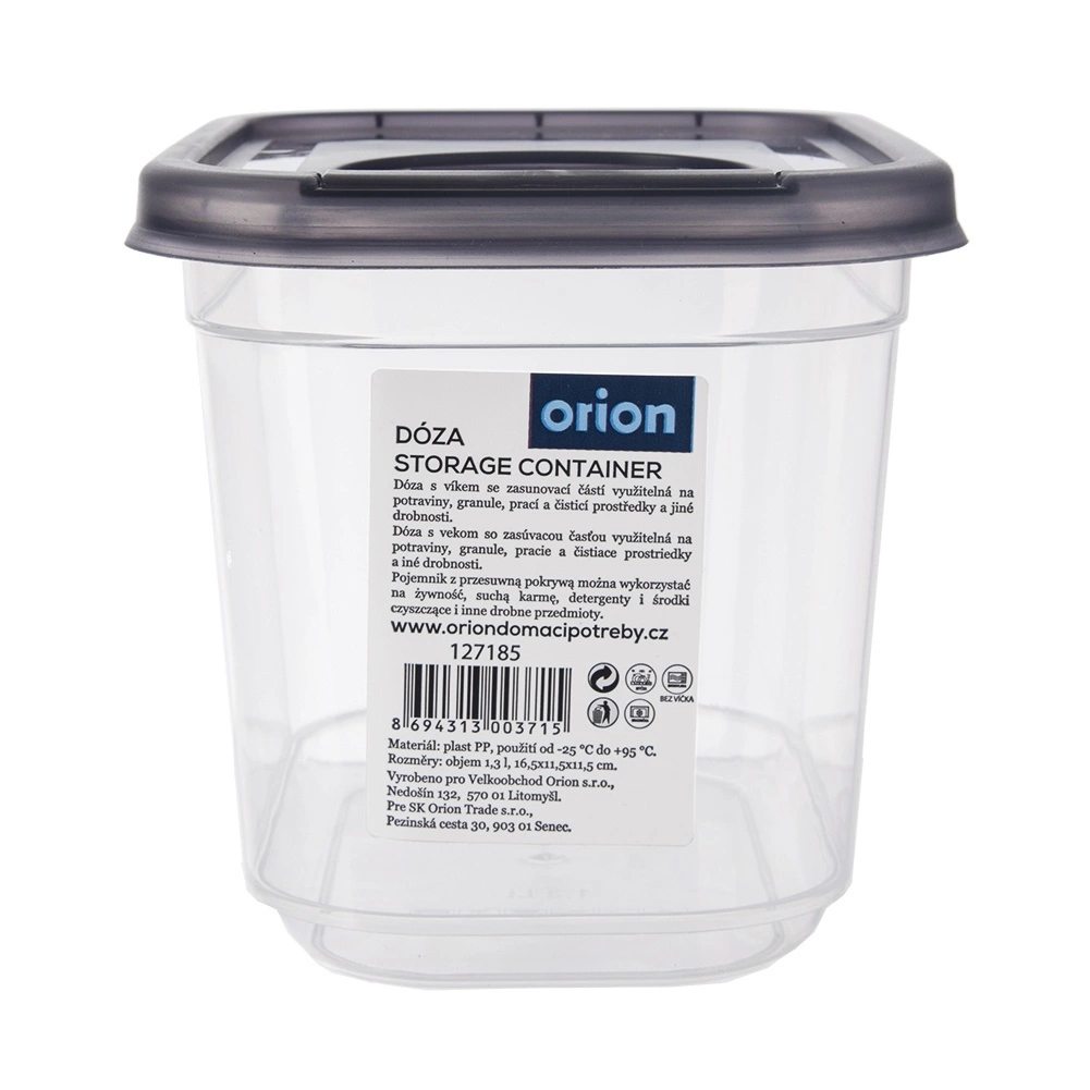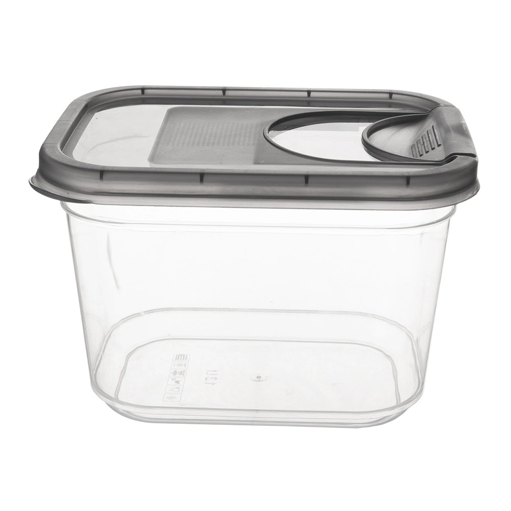 Πρακτικό δοχείο για ξηρά τρόφιμα με ενσωματωμένο δοσομετρικό καπάκι χωρητικότητας 1,3 l που διατηρεί τα υλικά σας φρέσκα για περισσότερο και τακτοποιημένα. Χάρη στο διάφανο σώμα έχετε πάντα τον έλεγχο του περιεχομένου, ενώ το ερμητικό καπάκι και το δοσομετρικό άνοιγμα διευκολύνουν την καθημερινή χρήση. Κατασκευασμένο από πλαστικό BPA free, κατάλληλο για ψυγείο, κατάψυξη και πλυντήριο πιάτων, καθώς και για θέρμανση σε φούρνο μικροκυμάτων χωρίς καπάκι.