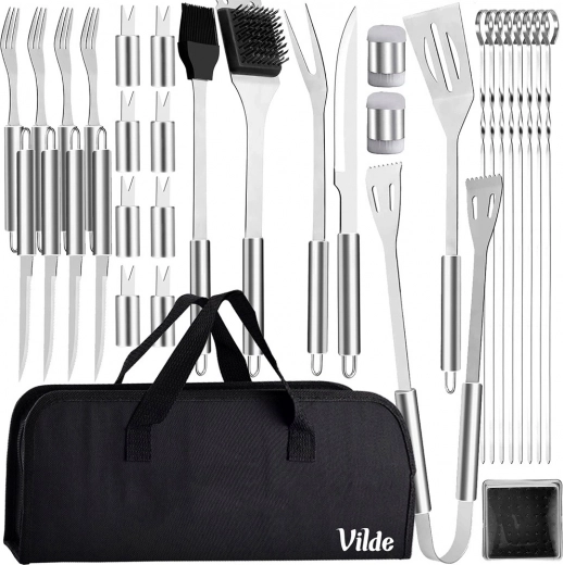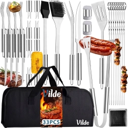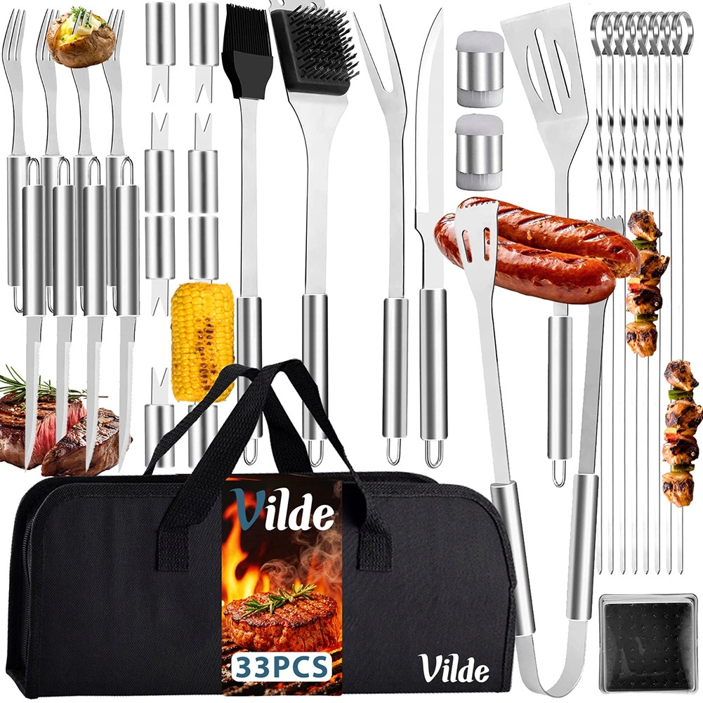 Αυτό το πολυχρηστικό σετ εργαλείων ψησίματος προσφέρει 33 προσεκτικά επιλεγμένα κομμάτια από ανοξείδωτο ατσάλι για καθημερινό ψήσιμο στο σπίτι ή σε εξορμήσεις. Οι μακριές λαβές με κρίκο ανάρτησης εξασφαλίζουν ασφαλή απόσταση από τη φωτιά και άνετο χειρισμό. Η πρακτική υφασμάτινη θήκη με στιβαρά χερούλια διευκολύνει την αποθήκευση και τη μεταφορά, ώστε να έχετε τα πάντα πάντα τακτοποιημένα και στη θέση τους.