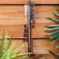 Πολυχρηστικό επιτοίχιο θερμόμετρο για μέτρηση θερμοκρασίας μέσα και έξω. Προσφέρει ευανάγνωστη κλίμακα -30 έως +50 °C, ανθεκτική πλαστική κατασκευή σε μαύρο χρώμα και εύκολη ανάρτηση σε τοίχο ή φράχτη. Ιδανικό για μπαλκόνι, βεράντα και κήπο, καθώς και για εσωτερικούς χώρους.