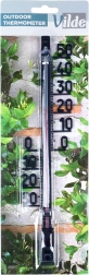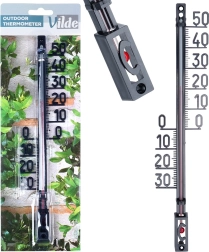 Πρακτικό και κομψό θερμόμετρο VILDE που μετρά με ακρίβεια τη θερμοκρασία του περιβάλλοντος αέρα σε εσωτερικούς και εξωτερικούς χώρους. Χάρη στα μεγάλα ψηφία και την έντονη κλίμακα είναι εύκολα αναγνώσιμο ακόμη και από μεγαλύτερη απόσταση. Ο κομψός μαύρος σχεδιασμός ταιριάζει άψογα σε τοίχο σπιτιού, φράχτη, μπαλκόνι ή σε προθάλαμο.
